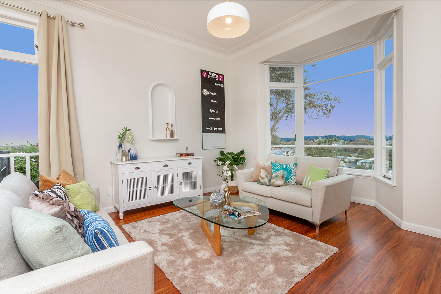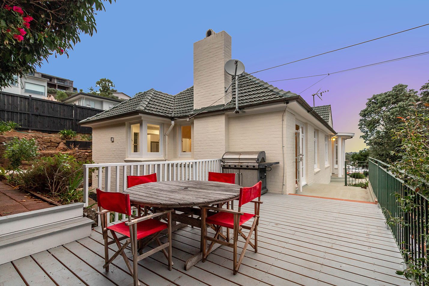 This elegant 1940s brick and tile home with a touch of deco, proudly sits at the top of a cul de sac right on the volcanic cone and boasts some of Auckland’s most breath-taking views! From the Waitemata harbour to Three Kings Mountain and Waitakere ranges across to the Manukau and beyond– the outlook here is absolutely stunning!