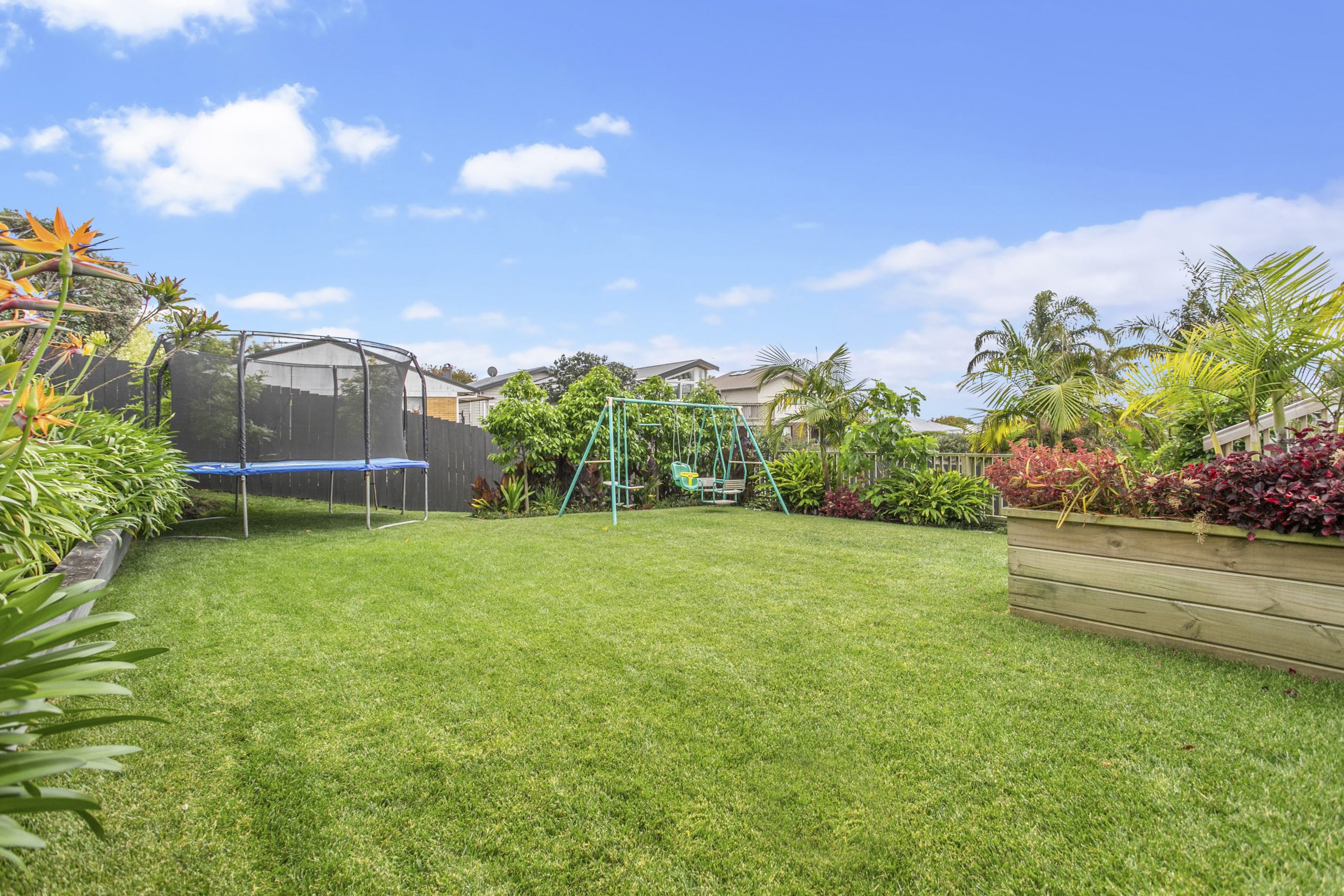 Step inside a light filled open plan living, dining and stylish kitchen which is all north facing and leads out through bifold doors onto a gorgeous entertainers deck; perfect for alfresco dining this summer. Be wowed by the sub-tropical garden setting and immaculate lawn before you – it is the perfect spot for kids to play or chill out in this sun soaked oasis, you could be in Fiji!
